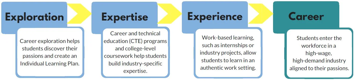 All students, starting in middle school, have career exploration opportunities and individual learning plans based on their strengths and interests